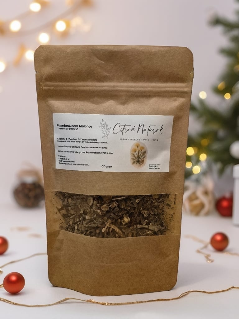 A warm and pure herbal tea that perfectly matches the coziness of the holidays.