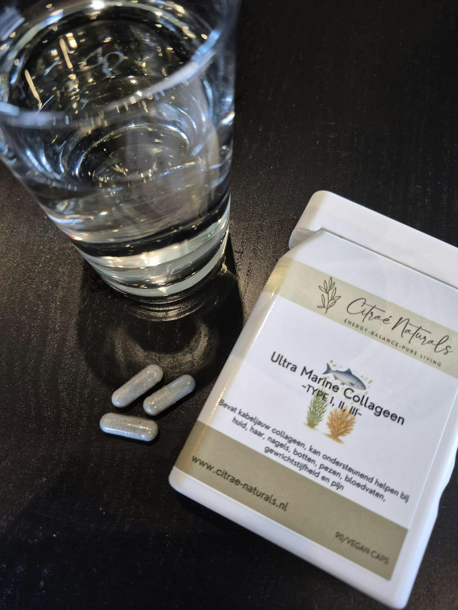 Marine Collagen is a high-quality formula that combines various types of marine collagen (types I, II, and III) with natural substances such as blue spirulina, marine phytoplankton, and MSM. Supplemented with vitamins and antioxidants, this supplement naturally supports the structure of skin, cartilage, and connective tissue.