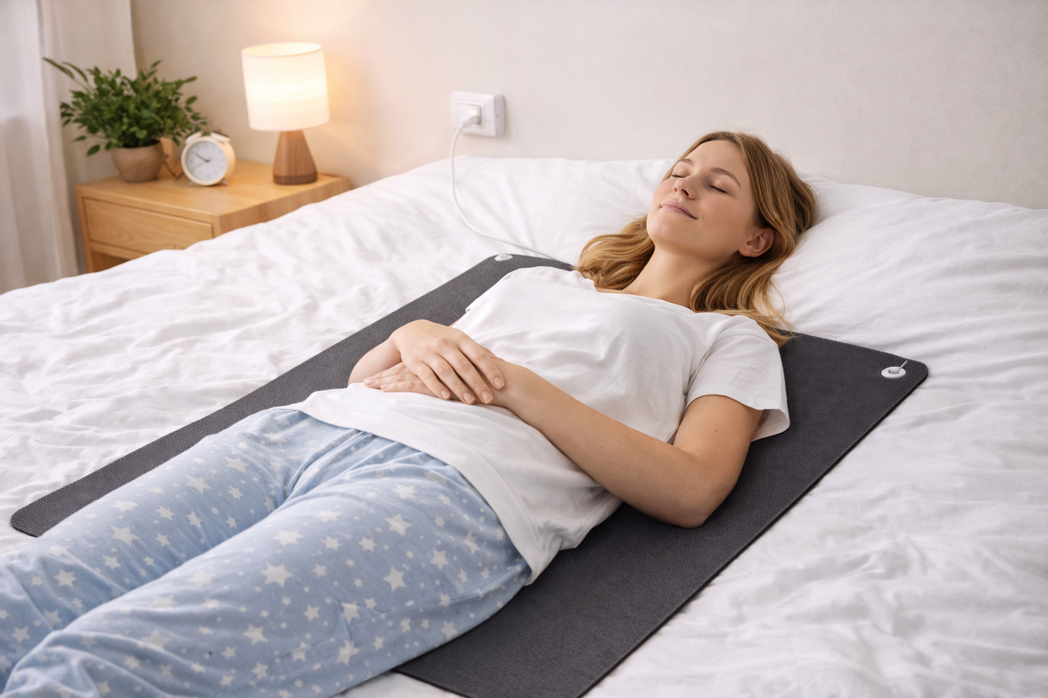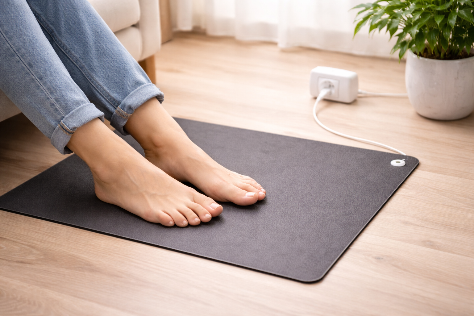 Of je nu werkt achter je bureau, ontspant op de bank of tot rust komt in bed: de mat creëert via een geaarde wandcontactdoos een directe verbinding met de aarde. Zo kan opgebouwde statische elektriciteit worden afgevoerd en ervaar je meer comfort tijdens je dagelijkse bezigheden.