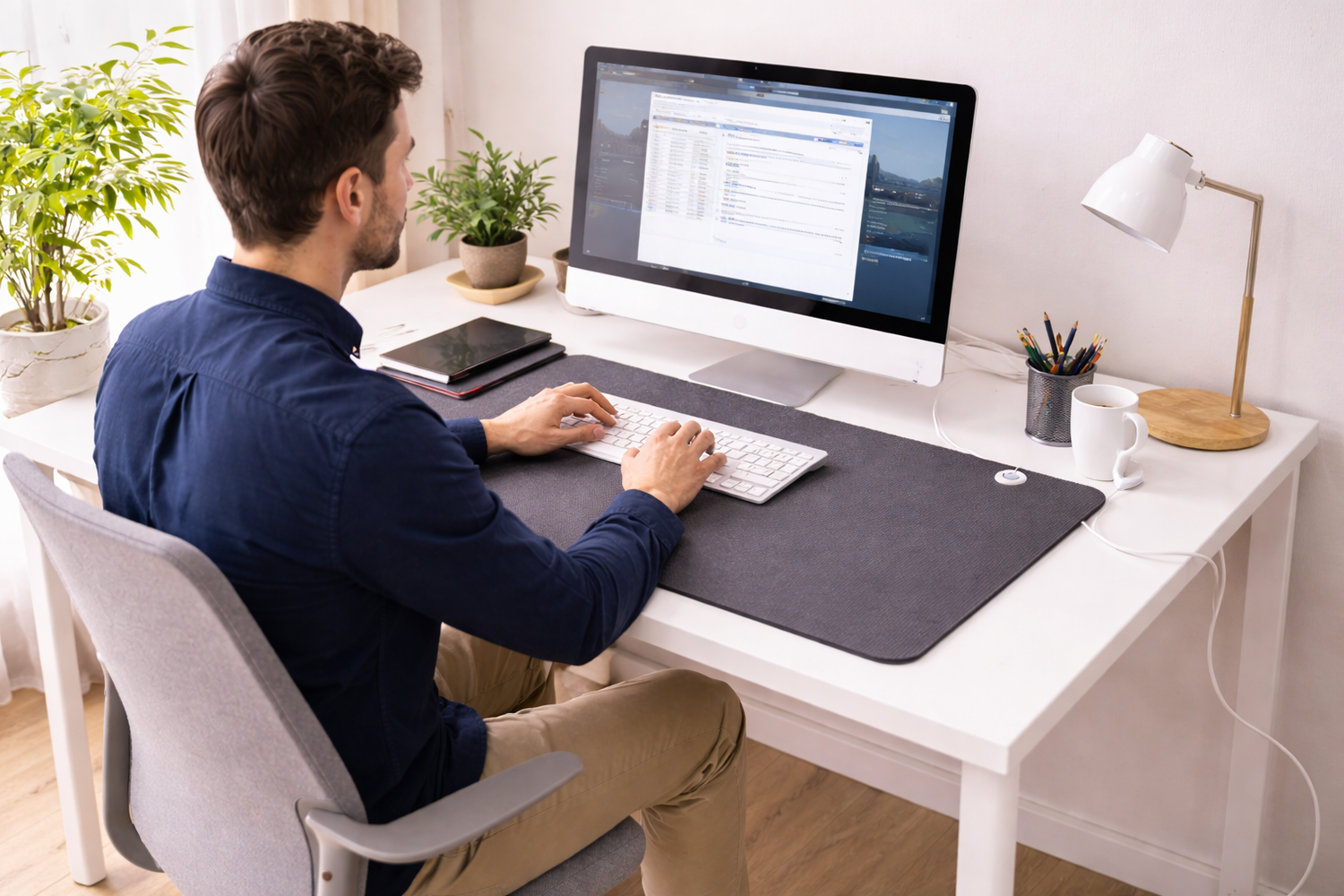 Werk je dagelijks achter een scherm? Deze aardingmat helpt statische lading af te voeren en ondersteunt een ontspannen lichaam tijdens lange werkdagen.