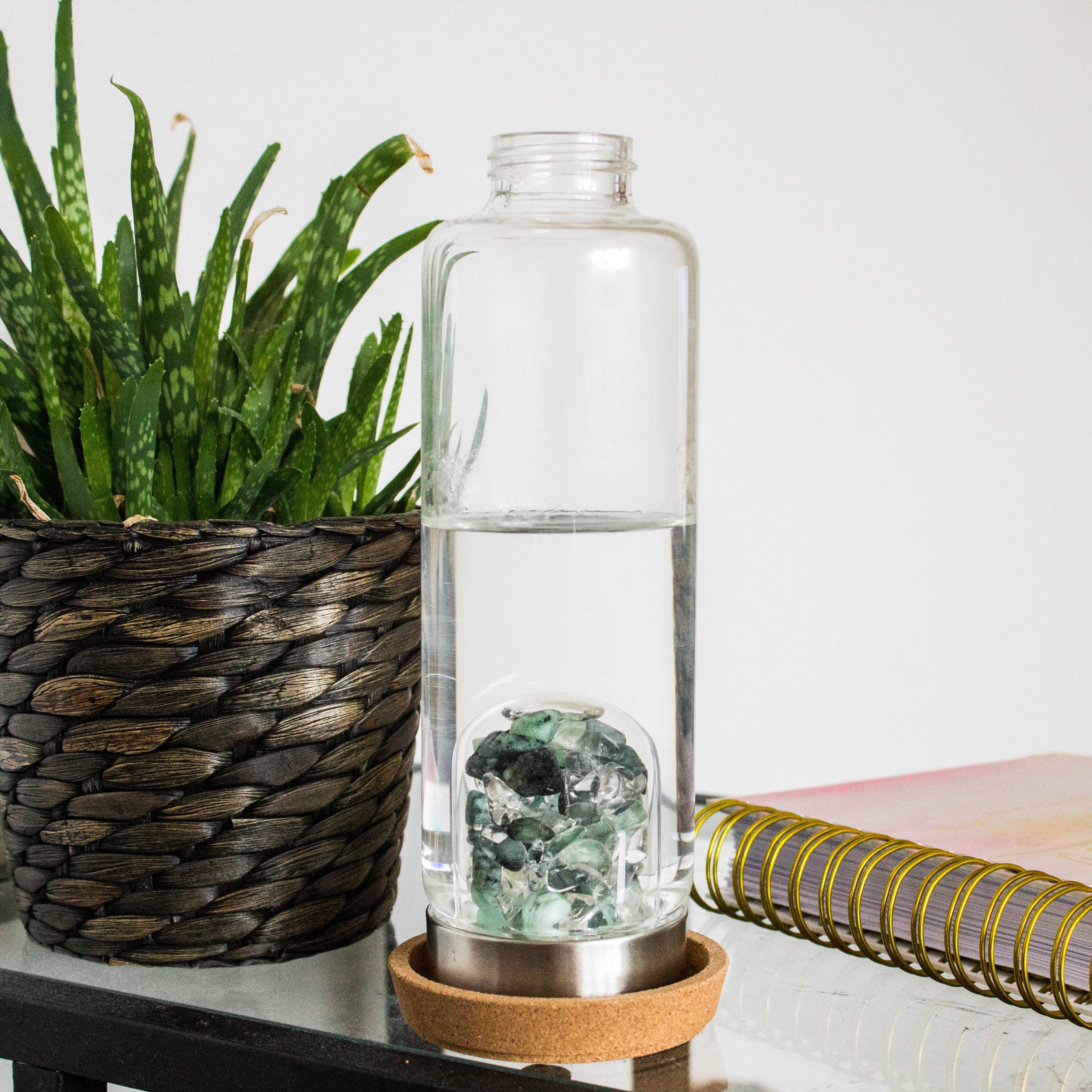 Geniet van edelsteenwater met deze ecologische, herbruikbare glasfles voor onderweg. Geef je water een boost met edelstenen. BPA-vrij. Milieuvriendelijk. Hygiënisch. Perfect voor een gezonde levensstijl en onderweg genieten van de voordelen van levend water!