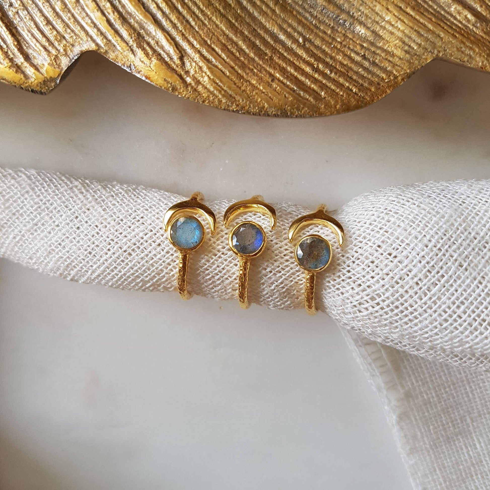 Vergulde ring van 2 micron, verstelbaar van maat 54 tot 60, met een labradoriet