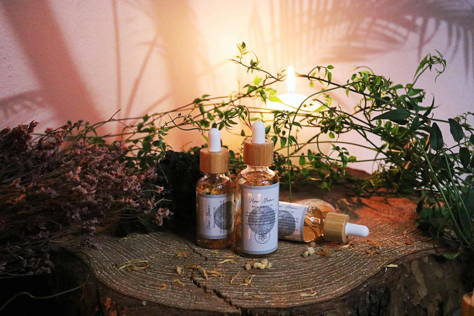 NIEUWE MAAN RITUEEL LICHAAMSOLIE MET KRISTLALLEN