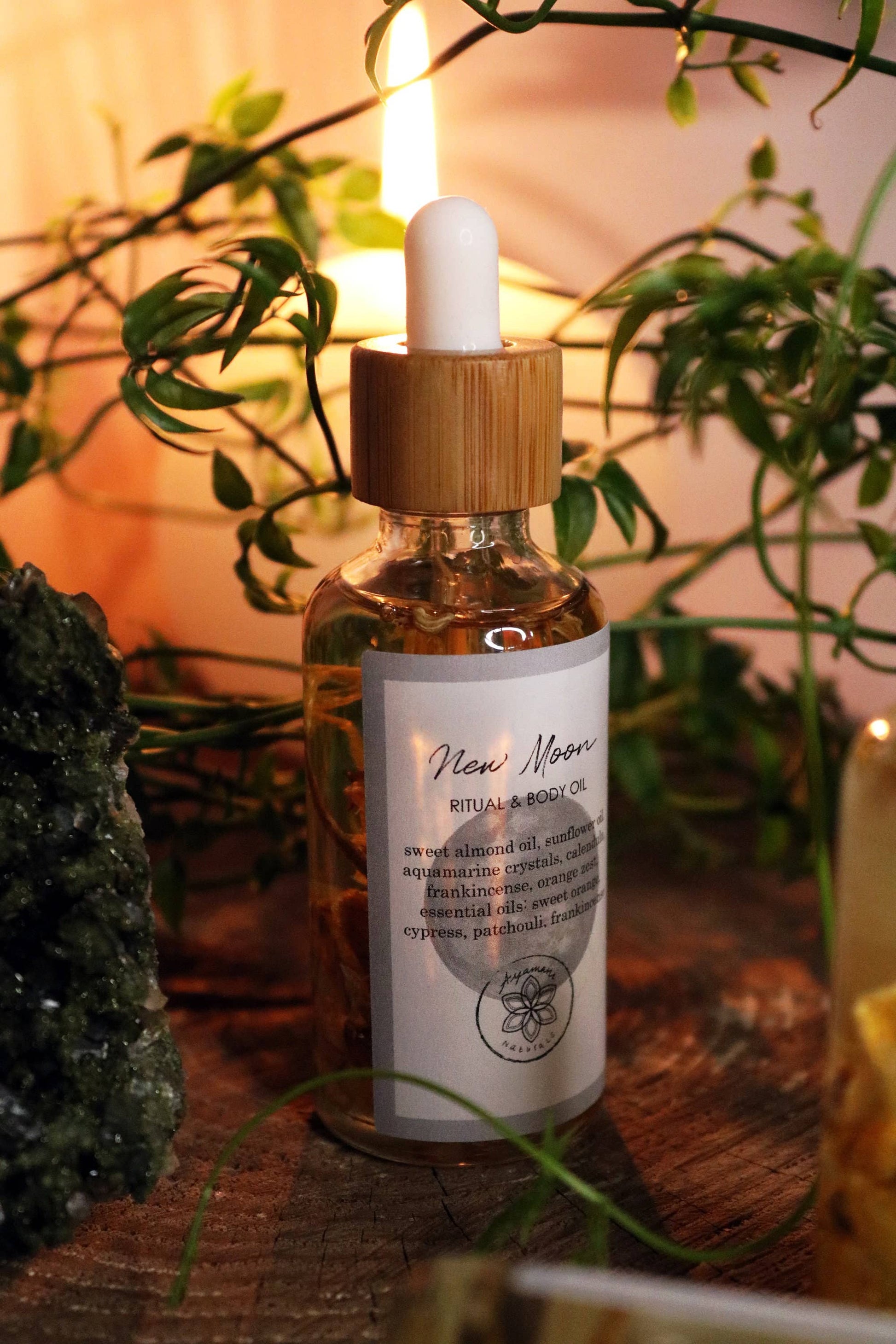 NIEUWE MAAN Olie | Ritueel- en Lichaamsolie, Kristal Geïnfuseerde Etherische Oliën, Nieuwe Beginnen, Manifestatie, Intentie Versterkende Olie, Spiritueel Geschenk